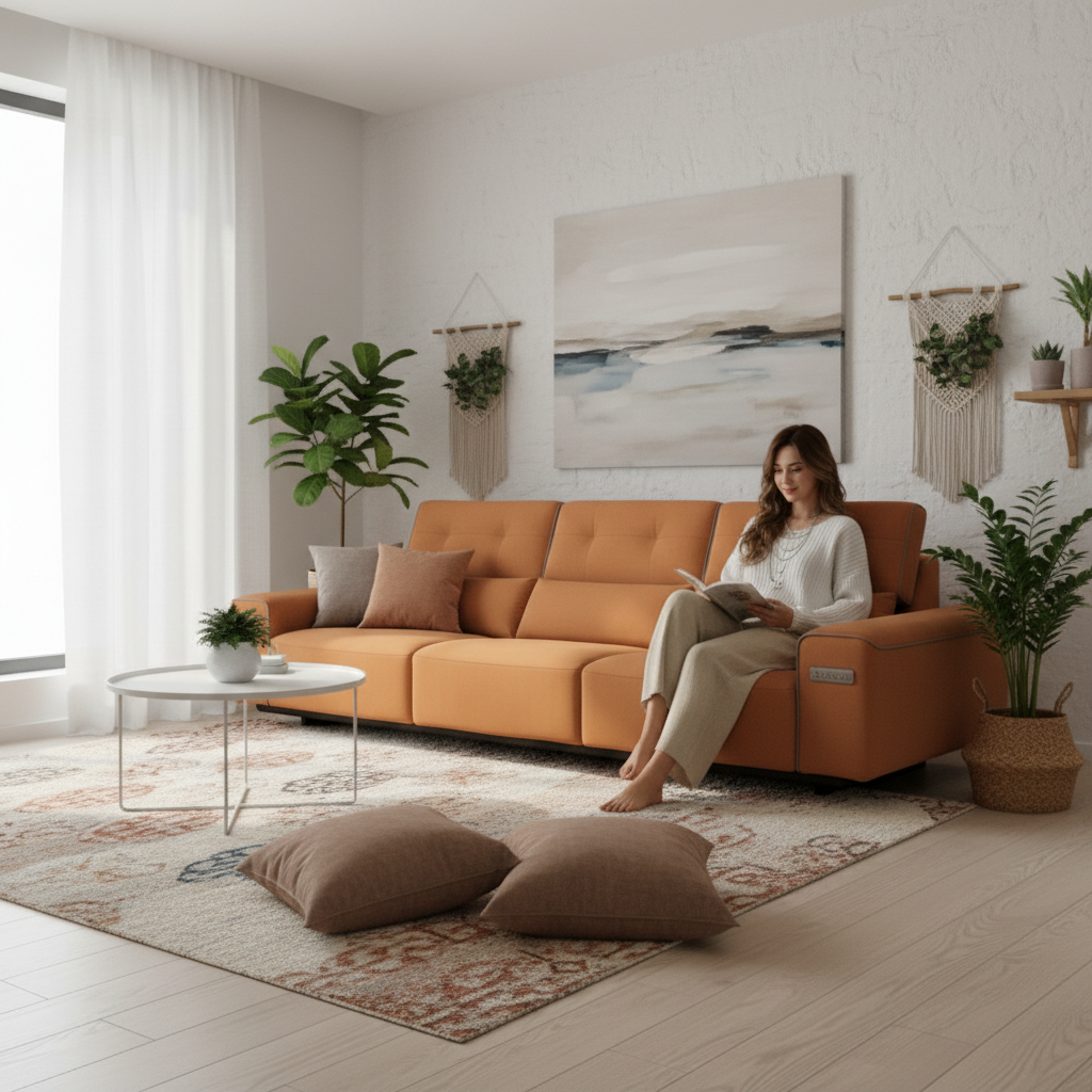 靈感源於義大利托斯卡尼的日落暖色,此款沙發以沉穩的焦糖橘,勾勒出極致純粹的現代線條。它不只是一件傢俱,更是空間的藝術品。採用頂級親膚面料,手感溫潤如絨,結合紮實的高密度支撐系統,在簡約低調的外表下,藏著對舒適度最奢華的追求。讓家成為一場永恆的午後時光。