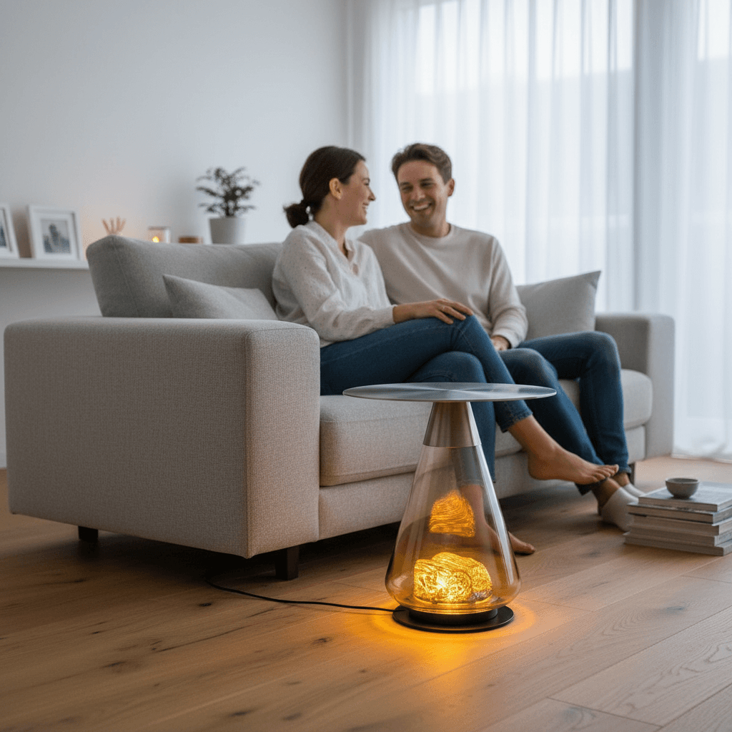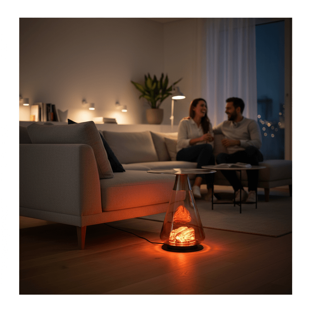 靈感取自大自然的原始力量。透過煙燻色的玻璃外觀,將熾熱的熔岩火焰效果安全地帶入室內。不需生火,卻能擁有壁爐般的溫暖感受,是提升居家情境氛圍的首選單品。